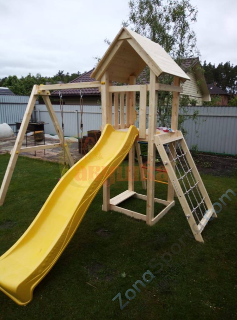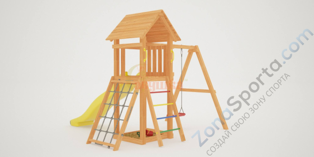 ОписаниеКупить Детскую площадку Савушка Мастер 7 (4 Сезона) в нашем интернет-магазине можно по самой выгодной цене, обратившись к нашим специалистам. Так же на нашем сайте собрана самая большая база отзывов, фото и видео о детских площадках от наших клиентов. Если хотите заказать товар недорого и с бесплатной доставкой и сборкой, тоже обращайтесь к нашим специалистам, подберём самое лучшее, что есть в России. Звоните, мы рады каждому обращению: 8 (800) 333-47-80. Детская площадка Савушка Мастер 7 (4 Сезона) - Центр площадки – башня, в основании которой находится песочница. Взбираться наверх можно по-разному: с помощью лестницы с разноцветными металлическими поперечинами либо по сетке-лазалке, которую поместили в раму для устойчивости. Домик закрыт сверху деревянным перекрытием – оно скрывает от прямых солнечных лучей и позволяет передохнуть на свежем воздухе. Комплекс универсален, поскольку включает в себя столь любимые детьми горку и качели (обычные, со спинкой или 3 в 1). Большой выбор дополнительного оборудования для площадки Вы найдете на официальном сайте. Ее можно преобразовать в морское судно, глухие джунгли или спортзону. Безопасная для детей любого возраста, из экологичных материалов, выполненная по ГОСТ – выбирайте для себя лучшее. Характеристики:
